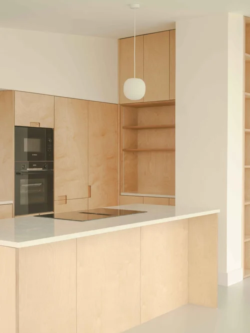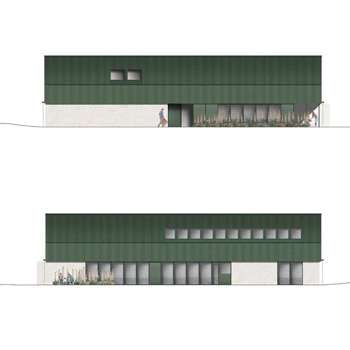 The house is conceived as part of the wider multi-layered landscape. Its roof planes are extensions of the rock outcrops. Monotone, muted tones of roughcast rendered walls and corrugated fibre cement roof panels enable the house to integrate quietly into its geologically rich setting. Grass green windows and doors speak to the island’s Marram grass and chasmophytes.