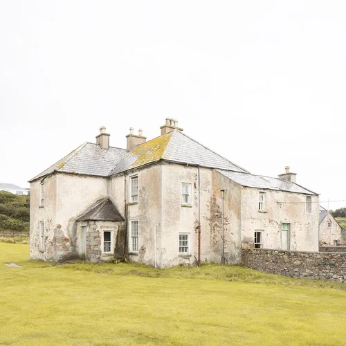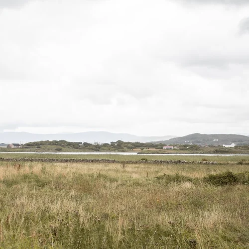 The Island of Cruit is characterised by rocky knolls and wind swept vegetation. It is bound to the west by the wild Atlantic and to the east by a sheltered bay dotted with tiny islands. A short walk in any direction ends at the sea. The house sits atop a granite cliff on the island’s eastern edge. At the base of the cliff is a secluded beach. Errigal Mountain and a 19th century signal tower occupy the horizon line.